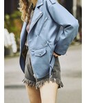 SAYA(jouetie)のライダースジャケット「オーバーライダースジャケット」を使ったコーディネート