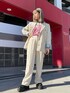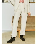 オーバーシルエットが華奢に見せてくれるジャケットは、裏地も綺麗です! ハイウエストで長めのパンツは厚底と相性抜群! 全体的にレトロな雰囲気のセットアップですが、グランジTを合わせて、jouetieらしさを取り入れました。 インナーにブラウスや、ハイネックのインナー、キャミソールに羽織るなど様々なコーディネートが楽しめます! オールシーズン使える素材なので、ニットやTシャツ、フーディなど合わせて使えます!上下で持っていると便利なアイテムです!