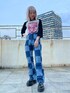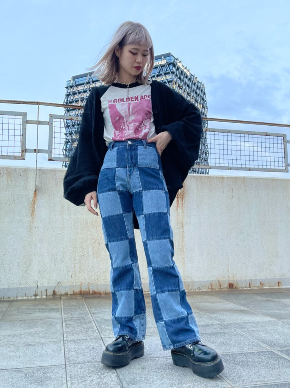 ロックテイストのラグランロンTとチェッカーパターンのデニムで70年代テイストのコーデに仕上げました。 ボリューム感のあるチュールドッキングカーデで、甘辛なテイストも取り入れ、差をつけたコーデに。 デニムが1枚で主役級アイテムなので、夏は白T合わせ、冬はシンプルなニット合わせでコーデが完成します! jouetieらしく攻めるなら、アニマル柄、今回のコーデみたいにロックTでブーツがおすすめです! 羽織りにライダースを持ってきても◎