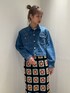 レトロな雰囲気のクロシェスカートに、ジャケットも昔懐かしい色味のデニムジャケットを合わせ、コーディネートしました! ジャケットはボタンを閉めトップスの様に着ましたが、Tシャツやキャミソールに羽織っても◎ jouetieらしいキャッチーな配色のスカートは、インナーのペチコート付きです。 一手間プラスで、ペチコート代わりにデニムを合わせ、ジャケットとセットアップ風に着るのもオススメです!