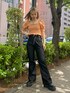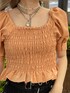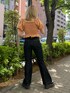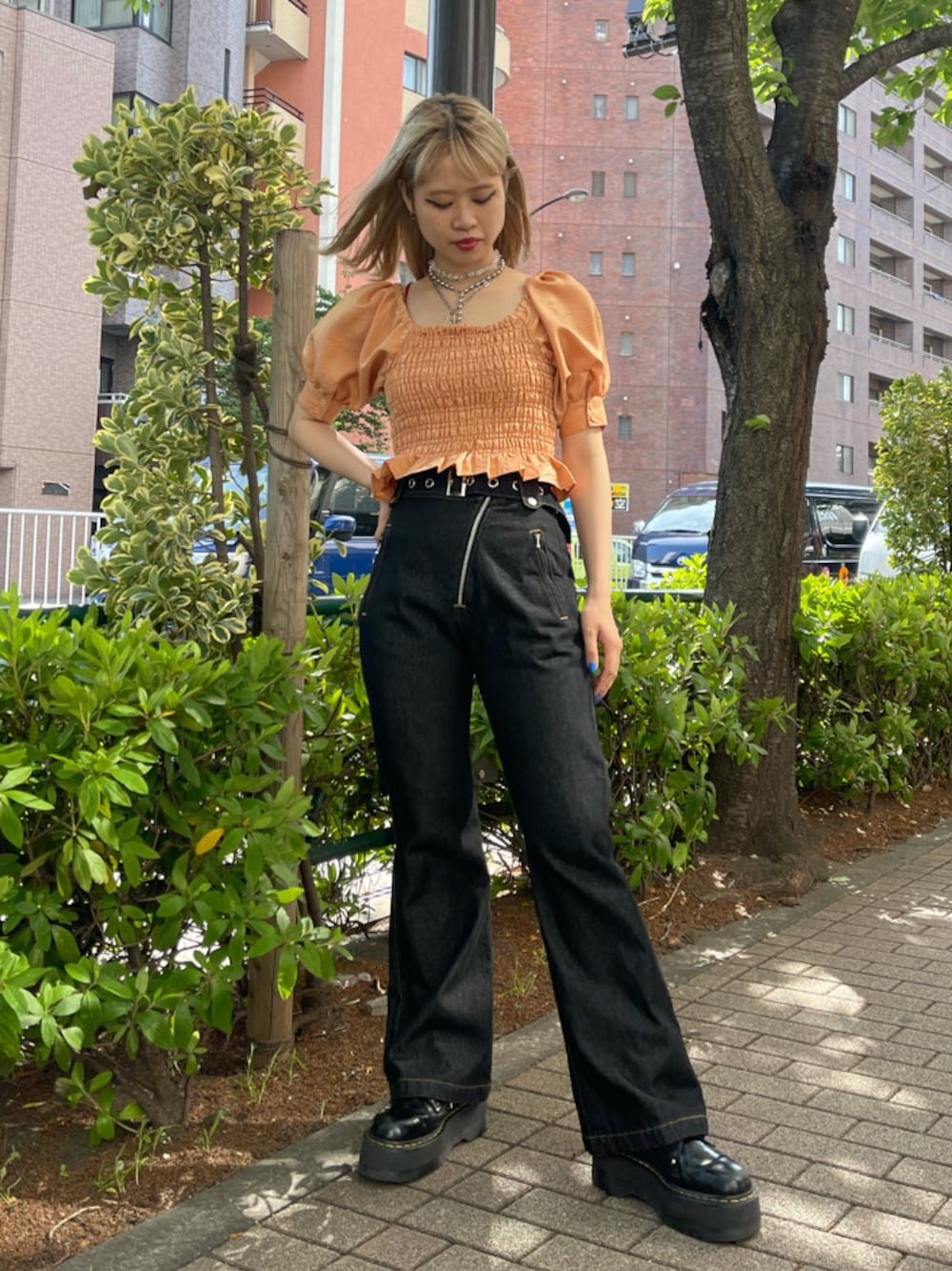 胴回りが柔らかいゴムのシャーリングデザインでサテン生地を使ったブラウスは、ショート丈なので、どんなボトムにも合わせやすい1枚! 肩のデザインがボリュームがあり、二の腕が隠せる長さで、スクエアネックになっているので、華奢見えするアイテムです。 甘めなブラウスなので、ライダースジャケットのディティールが落とし込まれたデニムで少し辛さをプラスして甘辛ミックスに仕上げました。 ワンポイントでバケットハットを組み合わせるスタイルもおすすめです! 甘辛なカジュアルスタイル以外でも、ロング丈のスカートでキレイめスタイルや、ショートボトムでスニーカーを合わせてスポーティスタイルも楽しめます!