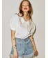 今季トレンドで1枚は持っておきたい、ビッグカラーのブラウスは、刺繍がポイントです! 白×赤の組み合わせは間違いなし! 子供っぽくなりすぎないように、黒のフレアデニムを合わせました。 袖は二の腕が隠れる長さで、ボリュームのあるパフスリーブが女性らしいポイント! 羽織りや、Tシャツ、ビスチェを重ねたりと様々なコーディネートが楽しめます! スカート合わせで甘めなコーディネートもオススメです!