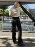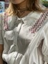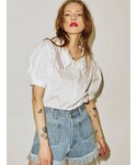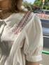 今季トレンドで1枚は持っておきたい、ビッグカラーのブラウスは、刺繍がポイントです! 白×赤の組み合わせは間違いなし! 子供っぽくなりすぎないように、黒のフレアデニムを合わせました。 袖は二の腕が隠れる長さで、ボリュームのあるパフスリーブが女性らしいポイント! 羽織りや、Tシャツ、ビスチェを重ねたりと様々なコーディネートが楽しめます! スカート合わせで甘めなコーディネートもオススメです!