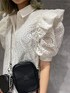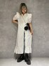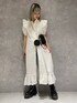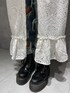 デザイン性抜群のコットンレースワンピースは、これからの時期に大活躍です! 肩、裾に大振りなフリルがあしらわれ、1枚で可愛らしく着て頂けます。 甘めのワンピースも、ダメージデニムを合わせる事でカジュアルな印象に! jouetieらしくブーツで、バッグも黒のレザーを合わせ統一感を出しました! ボタンを全部開けて羽織りでも使えますが、半分開けるだけで簡単にお洒落に着こなせます。 デニム以外にはショートパンツ、フレアパンツが相性抜群です! 真夏はサンダルで夏らしく、抜け感を出したい時はスニーカーを合わせるだけで雰囲気も変えられます!