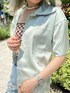 イチオシのBIGカラー(襟)シリーズのブラウス! サテンの素材で肌触りが良く、袖口が広く二の腕が隠れる長さが◎ 私はキャミソールに羽織りで着ましたが、ボタンを閉めて1枚でお使い頂けます! ダメージデニムで合わせ、かっこよくコーディネートしましたが、スカートやキャミワンピースに合わせて綺麗めなコーデもオススメです! サテン生地のアイテムは洗濯後も乾きが早いので、1枚あると便利なアイテムです!