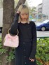 大人綺麗めコーディネート 【ワンピース】ショート丈のカーディガンがセットになったアイテム!161cmでくるぶしが隠れる長さのワンピースは全体の体型カバーも出来、1枚で綺麗めなコーディネートが完成します。ニットの編み方、ボタンの配置がワンピースとカーディガンが異なっているので、オールブラックでも表情が変わり重たく見えない所がポイント!低身長の方はウエストラインにベルトを巻いたり、厚底を合わせると◎ 【バッグ】光沢のあるピンクのベロア素材がコーディネートのワンポイントになるバッグ。バンブーハンドルが高級感あるデザインに抜け感を出し、カジュアル見せしてくれます。