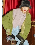 ストリート×カジュアルスタイル! 【アウター】161cmでお尻が隠れるオーバーサイズ!袖のボリュームがよりシルエットを大きく綺麗に見せてくれます。厚手のニットやフーディなども着込めるので、今の時期から真冬にも大活躍! 【トップス】オーガンジー素材にプリントされたデザインがキャッチーなプルオーバーも161cmでしっかりと1枚で着て頂けます!メンズライクなコーディネートにお花のデザインが女性らしさをプラスしてくれるアイテムです。