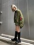 ストリート×カジュアルスタイル! 【アウター】161cmでお尻が隠れるオーバーサイズ!袖のボリュームがよりシルエットを大きく綺麗に見せてくれます。厚手のニットやフーディなども着込めるので、今の時期から真冬にも大活躍! 【トップス】オーガンジー素材にプリントされたデザインがキャッチーなプルオーバーも161cmでしっかりと1枚で着て頂けます!メンズライクなコーディネートにお花のデザインが女性らしさをプラスしてくれるアイテムです。