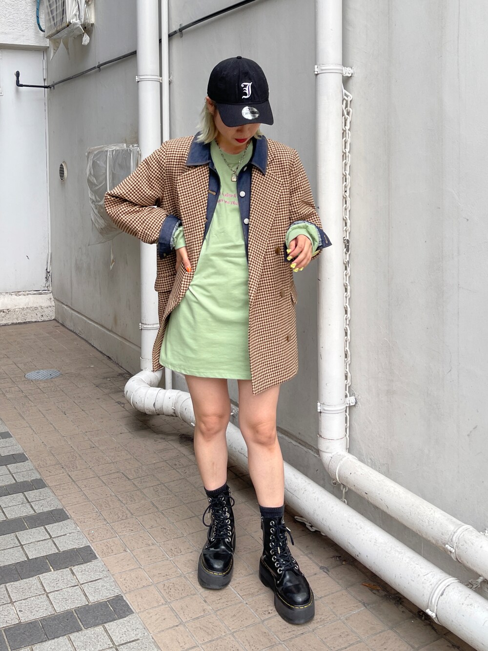 カジュアルMIXコーデ【ジャケット】161cmでお尻がすっぽり隠れるオーバーサイズ!jouetieのジャケットは裏地にもこだわりが!【ロンT】161cmでミニスタイルで着られます!袖も長さがあるので手元まで可愛いです!カチッとしたテーラードジャケットにデニムジャケットを重ねる事でカジュアルさをプラスしました!