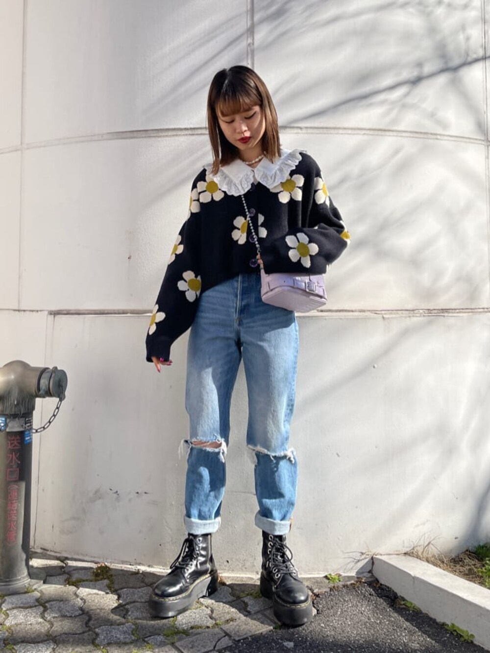 SAYA(jouetie)のデニムパンツ「ベーシックダメージボーイズデニム」を使ったコーディネート