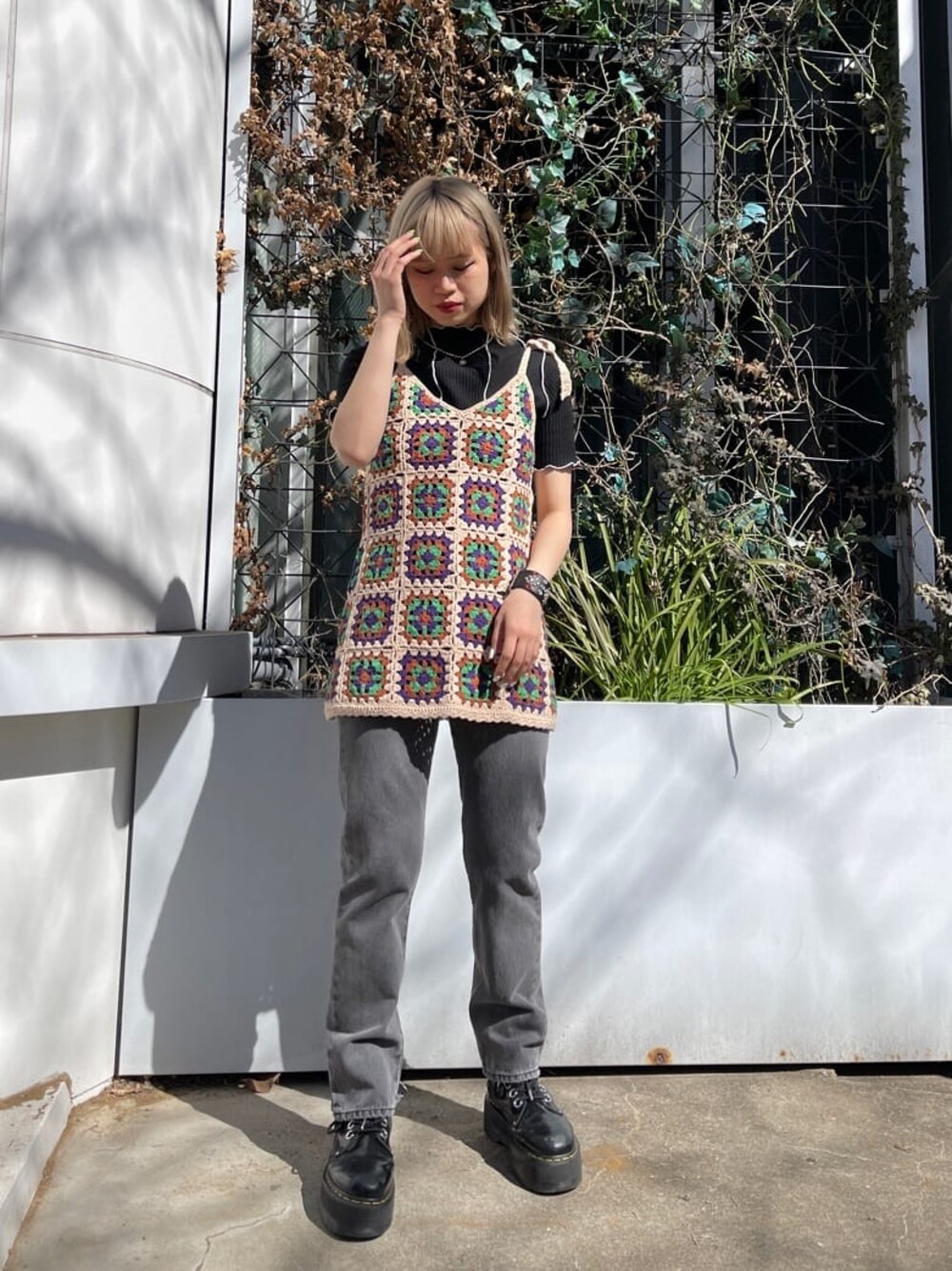 キャッチーなモノトーンコーデ【トップス】肌触りサラッと二の腕を隠してくれるトップス。柔らかい生地なので、今の時期から夏まで長く着られます!【クロシェニット】jouetieならではな配色で、肩紐で長さ調節可能です!ベージュ、ブラウンと落ち着いた色味のクロシェニットなので、大人っぽくコーディネートが出来ます!【デニム】後ろのジップを開くとフレアパンツ見えするデニム。開き具合も調節出来るので、様々なシーンでコーディネートが出来ます!