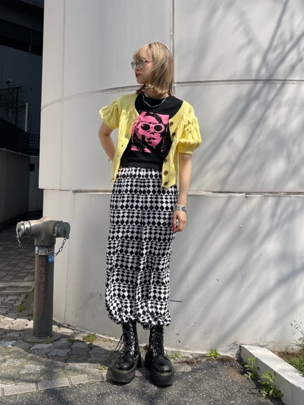 カラーを活かしたカジュアルスタイル【カーディガン】前後2wayで使えるカーディガン。柔らかいサマーニット素材なので真夏の羽織りに大活躍です!【トップス】トレンドのショート丈のTシャツ。ハイウエストボトムとの合わせがスタイル良く決まるのでオススメです!ショート丈なのでインナーとしてコーデのワンポイントになります!【パンツ】幾何学模様が目をひくパンツ。ハイウエストで薄手のさらっとした素材なので真夏も涼しく使えます!裏地付きなので透ける心配もありません!
