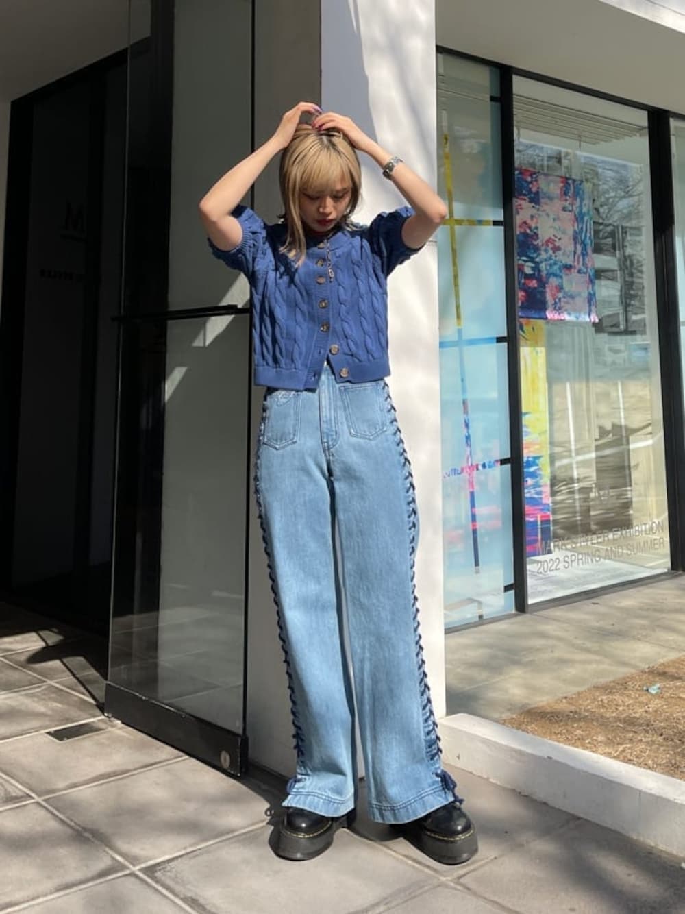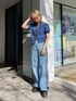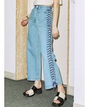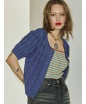 カジュアルワントーンコーデ【トップス】jouetieらしい柄プリントのシアートップス。肌触りもさらっとしているので、真夏はキャミソール合わせでトップスとしても◎【カーディガン】前後2WAYのカーディガン。サマーニットなので、今の時期から真夏の羽織としても大活躍です!Vネックとラウンドカラーで顔まわりの雰囲気も変えやすいアイテムです!【パンツ】161cmでMサイズを着用。ハイウエストで脚長効果絶大です!サイドのレースアップがポイントで、360度可愛く、そしてスタイル良く見えるデニムです!