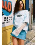 ストリートコーデ【Tシャツ】フランスのストリートブランドddpとのコラボTシャツ!161cmでお尻がすっぽり隠れるBIGTなので、ミニワンピスタイルで女の子らしく!【メッシュトップス】指先まですっぽり隠れるオーバーサイズ。メインでもインナーでも大活躍です!