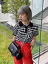 カラーパンツカジュアルコーデ【トップス】チクチクしないサマーニットタイプのトップス。柔らかい肌触りが◎ボタンとチェッカー柄がjouetieらしいです! 【パンツ】スポーティなシャカシャカ素材のパンツ。ハイウエストで細身なのでスポーティすぎないアイテム!ブーツを合わせMIXするスタイルがおすすめです!【バッグ】流行りのミニバッグ!華奢なデザインでも、ショルダーはチェーンで甘辛なデザインが可愛いです!