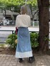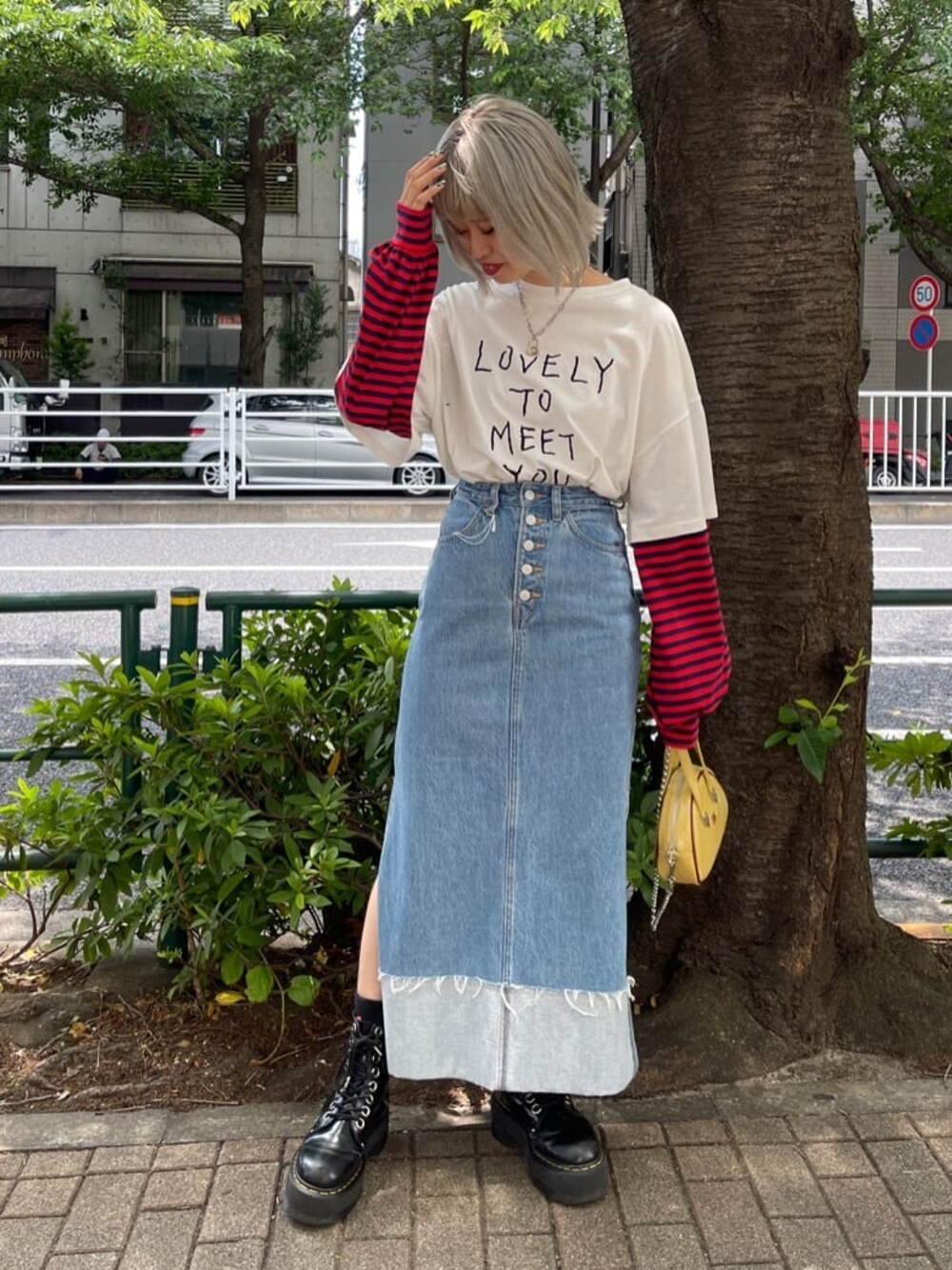スタイルアップカジュアルコーデ【トップス】ロンTがドッキングされたトップス。1枚でレイヤードスタイルが楽しめるアイテムです!袖も長さがあるので、萌え袖で女性らしいシルエットに!【スカート】161cmでSサイズを着用。ハイウエストのスカートなので、トップスをボトムインすると一気にスタイルアップするアイテム!両サイドのスリットもまた綺麗なシルエットに◎