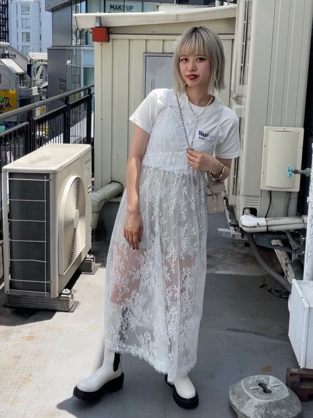 カジュアルホワイトコーデ【Tシャツ】コンパクト目なサイズが可愛いTシャツ!薄手の生地なので、可愛いインナー見せも◎【キャミワンピース】ロングTシャツワンピースとセットのアイテム!キャミワンピースだけでも着回しが出来ます!【バッグ】メイクポーチの様なバニティバッグ!ライダースディティールがjouetieらしくて◎【リール動画に詳細あります!】