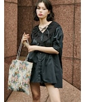 レースのチュニックワンピースをボーダーでカジュアルに!【チュニック】顔まわりの大ぶりのレースがポイントのチュニックワンピース!チュニックなのでボトムにインしても◎【カーディガン】シルエットが大きく、厚手のニットカーディガン。161cmでお尻も隠れるサイズなので、中にトレーナーやフーディも着込めます!