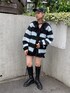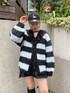 レースのチュニックワンピースをボーダーでカジュアルに!【チュニック】顔まわりの大ぶりのレースがポイントのチュニックワンピース!チュニックなのでボトムにインしても◎【カーディガン】シルエットが大きく、厚手のニットカーディガン。161cmでお尻も隠れるサイズなので、中にトレーナーやフーディも着込めます!