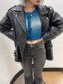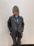 モードテイストコーデ【ジャケット】袖がZIPで取り外しベストでも使えるジャケット!柔らかい合皮なのですぐに馴染みます!161cmでお尻が隠れるサイズなのでトレーナーやニット合わせも◎【カーディガン】グラデーションカラーでコーデを華やかに!前後2wayで使えるアイテムです!柔らかいニット素材なので痒さも無く使えます!【デニム】ストレッチ素材のフレアデニム!美脚効果絶大なデニムです!伸縮性ばっちりなので動きやすいアイテムです!