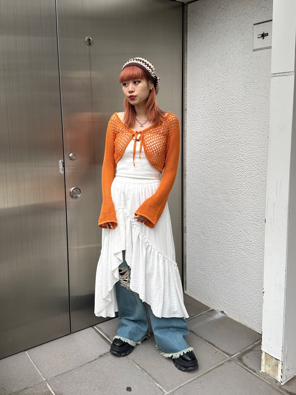 SAYA(jouetie)のカーディガン/ボレロ「メッシュニットボレロ」を使ったコーディネート