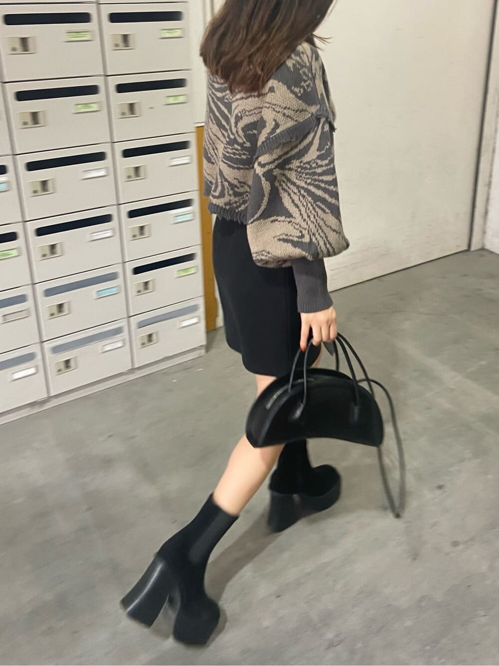 【knit】毎年大人気のアップネックニット♪ 今年はEMODAオリジナル柄のニットとしてマーブル柄のデザインで登場❤︎実は5色展開で無地、柄、色味を選び放題なのです‼︎今回私の着用しているカラーはMIX(ミックス)になります!ブラウンとベージュの二色使いの色味で大人な雰囲気に❤︎袖はボリューム感があり手首周りはキュッと細身になっていてメリハリのあるシルエットです!!【skirt】ハイウエストデザインでスタイルアップ抜群なスカート!中にはインナショーツも付いているため、スースーしてしまう事もなく安心して履いていただけます!!♪153cmの私は、ハイウエストデザインを活かしよりスタイルアップ効果を狙うために、レザーベルトをウエスト部分に巻いて最大限まで上に上げてベルトで丈感を調節しました!! 小物使いは安定の黒で揃えました♪是非チェックしてみてくださいね^_^❤︎