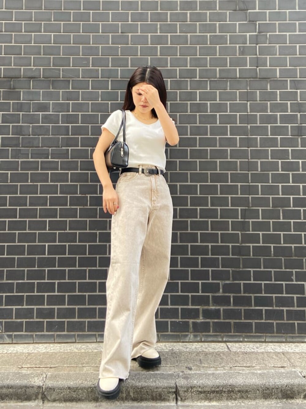 鈴木華澄(EVRIS)のベルト「メタルバックルフェイクレザーベルト」を使ったコーディネート