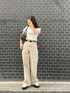 【春のワントーンコーデ❤︎】 【tops】EVRIS大人気デザインのSUNNYモチーフを施したリブショートTシャツです。同系色の刺繍でコーディネートのワンポイントになります。タイトなシルエットですがピタピタしすぎず程よく伸縮性が効いている為、着痩せ効果が期待できます❤︎! 【bottom】ワイドデニムは太すぎないシルエットでスタイルアップ効果があります。色加工もヴィンテージ感がありとても可愛いです!153cmの私は5cm程の厚底を履いて丈感ピッタリでした!!カラー展開豊富なので是非Checkしてみてくださいね!!