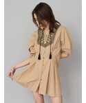刺繍デザインがポイントのシャツワンピース❤︎ウエストにはタックが入っていてスタイルアップ効果◎肩周りはゆとりのあるシルエットで気になる二の腕はスッキリカバーされ、肘下を華奢に見せてくれます!!小物はブラックでまとめて統一感をだしました!シューズは22.5cmでSサイズ着用。是非チェックしてくださいね!!