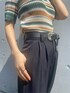 【TOPS】店頭でも大人気のマルチボーダーニット❤︎トレンドのグリーンを主役に配色がお洒落で可愛いです!!薄手でサラッとしているのでこれからの季節にぴったりです!!ボーダートップスでカジュアルになりすぎないよう、トップス以外は黒でまとめて格好良い雰囲気にしました❤︎【パンツ】ボトムはゆるっとしたシルエットで楽ちん♪裾はゴム仕様でキュッと足首周りを引き締めてくれるので細見えします!シューズは22.5cmでSサイズ着用です。是非チェックしてみてくだささいね!