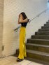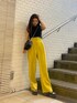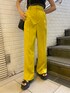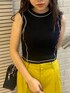 カラーパンツが主役の春夏コーデ❤︎ 【tops】黒地に白のステッチがポイントのタンクトップ❤︎白のステッチが入ることにより黒の重たい印象も明るく見えます!タイトなシルエットでスッキリと華奢な印象に!【bottom】イエローが目を惹くカラーでとても可愛い!後ろはゴム仕様になっていて履き心地も◎身長153cmの私で厚底合わせで引きづらずに履けちゃいます◎ 【shoes】22.5cmでSサイズ着用。