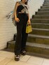 【shirt】ビスチェとセットアイテムのシャツを着用。トレンドのたすき掛けでスタイリングのアクセントに♪【inner】チェーンデザインがEVRISらしいキャミソール。パッド付きなので下着なしで1枚で着用可能◎パッドは少し厚めでバストラインを綺麗に見せてくれます。【bottom】センタープレス入りのストーレートパンツ!とにかく楽ちんで履きやすい♪そしてハイウエストなので脚長効果大。153cmの私で厚底合わせで引きずる事なく履けちゃいます!【shoes】22.5cmでSサイズ着用。