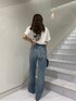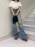 【tops】大胆なグラフィックが目を惹くTシャツ❤︎左胸のワンポイントロゴに加えバックスタイルのフラワーモチーフデザインがお洒落!【bottom】程よい開き具合のダメージデニム❤︎ワイドシルエットで、ゆるっと履くのがオススメ♪身長153cmの私で7cmの厚底合わせで引きづらない丈感です!着用ヒールは10.5cmです!【shoes】22.5cmでSサイズ着用。