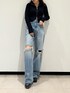 鈴木華澄(EVRIS)のデニムパンツ「ダメージワイドデニムパンツ」を使ったコーディネート
