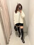 白ニットでモテコーデ❤︎【tops】袖のケーブル編みがポイントのニット。シンプルなので着回し抜群間違えなし。ゆったりしていてとても着心地の良いです。【bottom】153cmでSサイズ着用。太もも周りに余裕がある為、足が細見えします!!【boots】22.5cmでSサイズ着用。ソックスブーツでとても伸縮性がある為履きやすいです。ミニボトムにニーハイ合わせは冬に絶対したいコーデですよね❤︎