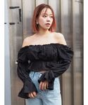 鈴木華澄(EVRIS)のシャツ/ブラウス「フリルクロップドオフショルトップス」を使ったコーディネート