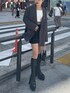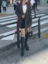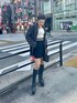 秋のジャケットコーデ🍂🧥🖤 【jacket】オーバーサイズのジャケット!153cmの私でお尻がすっぽり隠れるくらいです!【skirt】ウエストのラインデザインが韓国っぽくて可愛い!【shoes】トレンドのヒールタイプのミドルブーツ🖤ピッタリフィットするので細見え効果抜群。少し長いので私は内側に1cmほど折り返してます◎