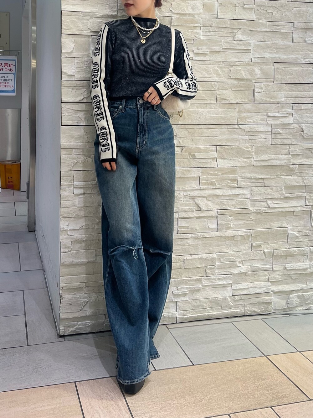 鈴木華澄(EVRIS)のデニムパンツ「ニーダメージルーズデニムパンツ」を使ったコーディネート