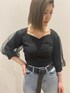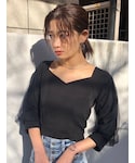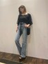 シアー感のあるスリーブとハートネックで鎖骨ラインを綺麗に見せてくれる女性らしいデザインのトップスです。ボリュームスリーブですが、身頃はタイトな作りになっているのでメリハリのあるすっきりとした印象に♡フレアジーンズは、履きこんだようなヴィンテージ風の色味がよりオシャレに見えます✌︎生地も柔らかく、少し太ももにゆとりが出るので動きやすいです‼︎152cmの私は、厚底で綺麗に履ける丈感でした☺︎ちなみに着用している厚底は13㎝で、足首にストラップがあるので安定感もあってオススメの一足です‼︎