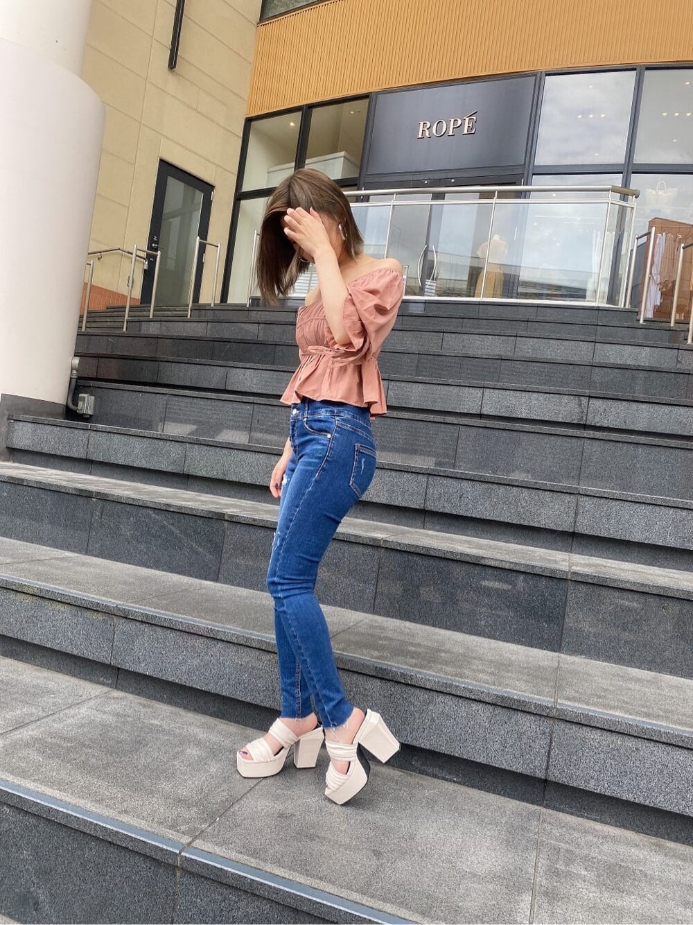 ひんやりツルツルっとした素材が特徴のこのトップスは着心地がとってもよく、これからの時期大活躍になりそう! 丈感も短めなのでハイウエスト合わせがお勧めです♪肩周り、腕周り、腰回りにはギャザーが入っているので、丈調節や肌見せ、体のラインにメリハリつけてくれます!!デニムはダメージを効かせ、少しカジュアルな雰囲気もいれてみました!シチュエーションにあわせて、ボトムを変えるだけで雰囲気も違って見えますよ!!厚底はホワイトで、夏らしくしてみました!!傾斜もほぼ感じなく、ヒールがスクエアなのでモードっぽさがでますよ!!