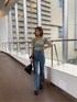 トレンドのくすみグリーンを使ったコーデ♪ こちらのミントグリーンの色は明るめなので、は顔色を良くさせてくれます。大きく首元が開いたスクエアのトップスは鎖骨ラインが綺麗に見えるので女性らしさもアップです!パフスリーブは顔まわり小さく見せてくれるのでおすすめのトップスです!アイスブルーで合わせると夏らしい雰囲気で着用できます!! こちらのデニムは本当におすすめです!ストレッチのないでにむなので固めの素材で、足をより引き締めてくれます!膝下から裾にかけての「シルエットが「本島に綺麗に見せてくれます!s¥ぜひ機会があれば店頭でお試しください♪ フレアデニムは足のラインを綺麗に長く見せてくれるのでオススメです!身長152cmで厚底履いてサンダルに少し被さるくらいです!!ストレッチなどは効いていないですが、履いてくうちに馴染みが出てくるので履きやすくなりますよ。すでにフレアパンツ持っている方でも、生地や色味が違うものであれば新しくゲットしてみてはいかがでしょうか??厚底はEMODAで大人気のサンダルです!店頭も残り僅かになってますので、是非お近くの店舗にお問い合わせくださいませ。