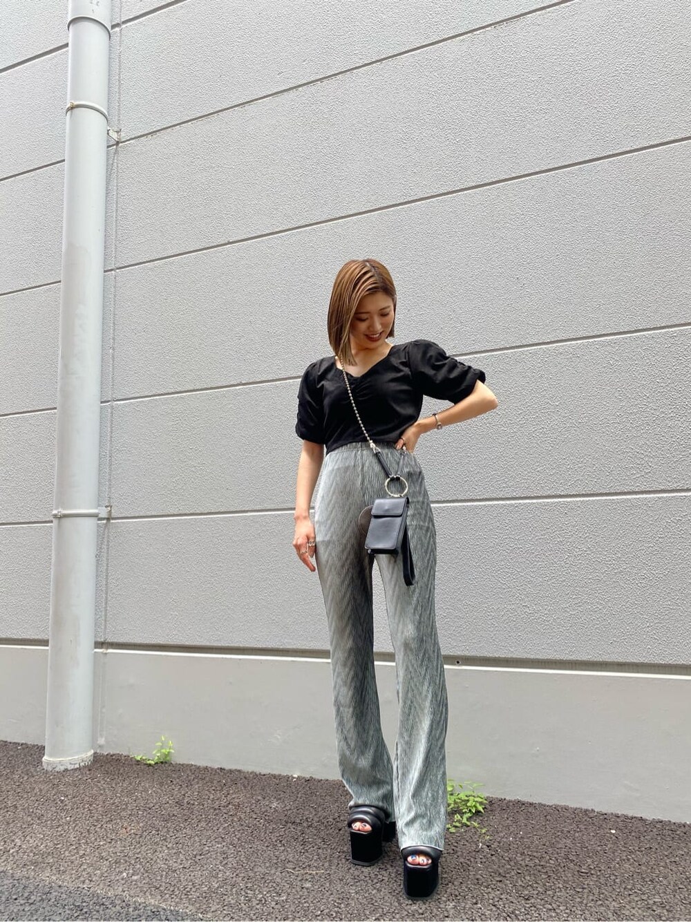 加納沙耶佳のその他パンツ「グロスフィットプリーツフレアパンツ」を使ったコーディネート