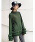 袖や裾にフリンジが施されているのがポイントのニットです!Aラインで広がりのある形になっているので、タイトスカートやフレアパンツスキニーとの飽き性が〇です!1枚でデザイン性があるので、アウターやボトムがシンプルでも映えますね!152cmの私で、お尻が被さる長めの丈感なので、私はミニスカート合わせでワンピース風にし、厚底ブーツでスタイルアップ効果を狙ってみした!フリンジと厚底ヒールのブーツで綺麗めにしてくれるので、デートの格好にも良さそうですね◎是非チェックしてみてください