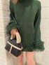 袖や裾にフリンジが施されているのがポイントのニットです!Aラインで広がりのある形になっているので、タイトスカートやフレアパンツスキニーとの飽き性が〇です!1枚でデザイン性があるので、アウターやボトムがシンプルでも映えますね!152cmの私で、お尻が被さる長めの丈感なので、私はミニスカート合わせでワンピース風にし、厚底ブーツでスタイルアップ効果を狙ってみした!フリンジと厚底ヒールのブーツで綺麗めにしてくれるので、デートの格好にも良さそうですね◎是非チェックしてみてください