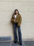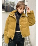 [ニット]袖のギャザーが特徴的なニット。首元はスクエアでデコルテが綺麗に見えます!柔らかい肌触りなのでとっても着やすいですよ。[デニム]ジャストウエストのフレアデニムで、履くと骨盤の上くらいの股上の深さです!太ももあたりは細身になっていて、程よい柔らかさなので履きやすかったです。[シューズ]安定感のある厚底ローファー。軽さもあり、足の負担にもなりにくいです!私は23.5cmでSサイズでぴったりでした!合皮を使用しているので、なじみも出てきて柔らかくなり更に履きやすくなりますよ![アウター]珍しいコーデュロイ生地のダウン。丈はショート丈になっていますが、短すぎずドローコードでも多少調節も効くので、幅広いコーデで合わせていただけます。ダウンは持ってるけど、、って方や、人とは被りたく無いなって方におすすめです!ダウンとフェザー50ずつ入っているのでとってもあったかいです!