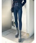 加納沙耶佳のデニムパンツ「スイッチングハイウエストパギンス」を使ったコーディネート