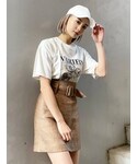 【トップス】表にあるデザインが、可愛いTシャツ♫長さは長めでお尻被さるくらいでした!落ち感のあるゆるっとしたシルエットも女性らしくて◎ 【ボトム】さらっとした履き心地が、夏の暑い日でも大活躍しそう!フロントにあるタックのデザインが足をすらっとまっすぐに見せてくれますよ!厚底7cmで合わせられました! 【シューズ】厚底ですが、ヒールは7cmのソールが3.5cmで高低差も感じなく、長時間歩いていても楽ちんです!マットな素材なので、様々な系統で楽しめますよ! 【バッグ】肩掛け用のワンハンドルのバッグです。持ち手のシルバーのデザインがポイントになります!