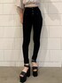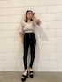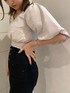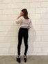 綺麗め×モード【トップス】Vネックの空き具合が、鎖骨くらいなので、程よい露出感で女性らしい印象に!インナー着ずにピッタリと着れるのが嬉しいポイント!5部袖なので、秋や春も着用してると思います♪【ボトム】私が履いてるハイウエストデニムは、生地が少し薄くなってます!今までのいいところの特徴はそのままで、伸縮性も抜群です!身長152cmで丈をうち折りに5、6cmほど折って調節しています。【シューズ】23〜23.5cmでMサイズ着用しています!ヒールは13cmでソールは7.5cmくらいです。また足首のストラップが安定感もあり、歩きやすいです!