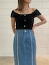 映画デートコーデ【トップス】】肩周りは太めなショルダーデザインになってるので、腕を華奢にすっきり見せてくれます♡程よいフィット感があるので、ボトムも幅広く合わせられます。【ボトム】こちらのマーメイドスカートは、デニム生地なのに柔らかくストレッチが効いてる為、履きやすいです!前と後ろにあるフリンジデザインが、スッキリと見せてくれる効果もあります!【シューズ】去年も人気なシューズが今年も登場しました♪甲の部分のバンドのデザインは、柔らかい為負担になりにくく、長時間履いても疲れにくい仕様になっています!【アクセサリー】シンプルで使いやすいです!長さは短めで私がつけて、鎖骨被るくらいなので、ハイネックや、デコルテが空くトップスと合わせるとバランス良いです♫