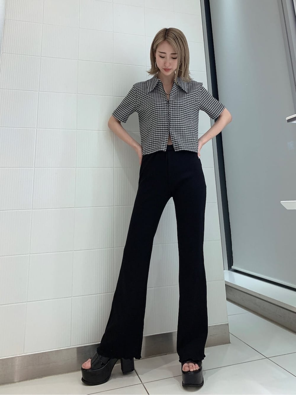 両端がジップになっているこのシャツはとても万能アイテムです!下のジップでお腹チラ見せもできるし、もちろん全部外して羽織でも使えます♡そしてこのフレアパンツは裾が少しフリルデザインがポイントです!ゆったりしたフリーサイズなのですごく楽です。
